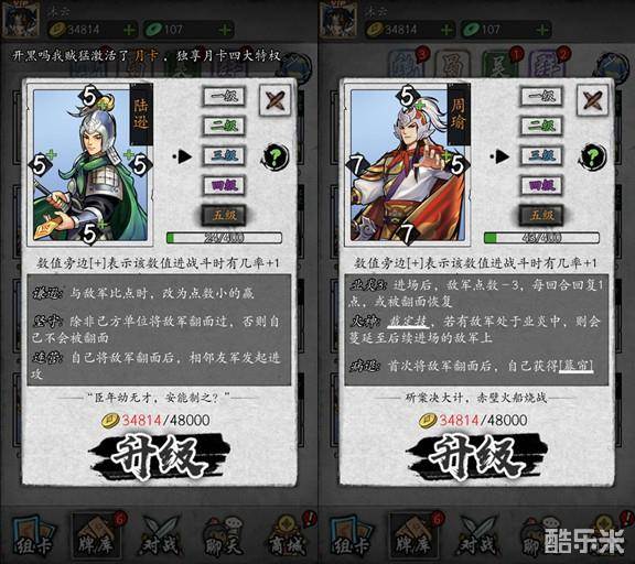 至于吴国,它的机巧灵动使我又爱又恨。如果将蜀国武将的谋略称为阳谋,那么吴国四两拨千斤的巧劲,似乎让人感到阴谋诡计的意味。比如说陆逊的“谦逊”技能,“与敌军比点时,改为点数小的赢”,这一招骚操作,令许多高点数武将大佬折戟沉沙。甚至在和吴国玩家对阵时,陆逊现身前的每一次派兵遣将,都令我感到举步维艰。另外,限定周瑜“进场后若有多名相邻单位,则令他们翻面”的霸道技能,令不少玩家的神仙布局惨遭逆转。