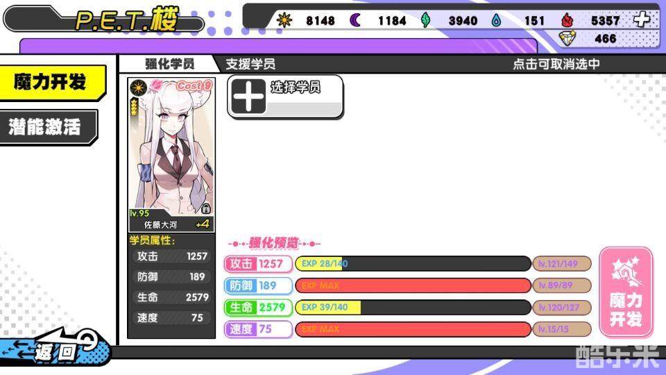 另外,我发现,五星角色的强化上限要高于四星角色的强化上限。举例,我白虎攻击强化上限是149级,而水母攻击强化上限是179级(应该没记错),整整差了30级,升1级攻击似乎是涨2点--4点来着。