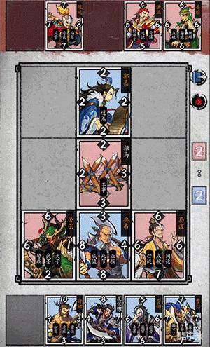 典韦也属于四围中有两个方位点数较强的武将之一,最佳的放置位置是右上角的3号位。二级时,典韦将获得第一技能【威吓2】,有效的削弱了敌军点数,以发挥自己的优势;三级后,典韦将获得第二技能【死节】。这个技能确保了典韦即使被翻面,也不会增加敌军数量;但不得不重视的是,典韦被移除后,自己的牌数也相应的减少了。在此后的升级中,典韦将获得第三技能【业报】,并通过技能升级获得【威慑】技能。这两个技能将配合典韦自身的点数增长,进一步削弱敌军,增加友军的实力。