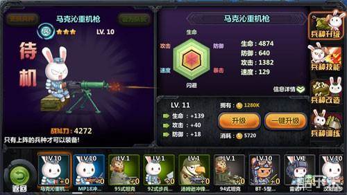 除了装备外,为部队升级与提升改造等级同样重要。所谓“橙卡诚可贵,紫卡价更高”,虽然橙卡的基础攻防等级与生命值与远高于橙卡,但这并不意味着组起一队橙卡就能够碾压一切,这一切的关键在于部队的改造。正如上面提到的,紫卡+2情况下便能够吊打橙卡,而+1就能够在属性上不处于下风。考虑到橙卡培养改造的巨额花销,可以说游戏初期确实还是紫卡的主场。或许在中后期,《那兔之大国梦》将步入全民橙卡时代,但毕竟对于新手兔玩家来说,着眼于现在才是重中之重,一步一步发展才能够建设好种花家!