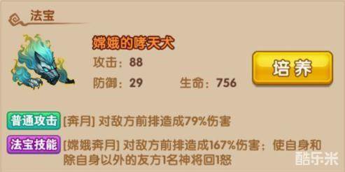 觉醒之威:哮天犬觉醒后可激活,法宝大招觉醒为超·哮天犬,伤害和效果大幅提升