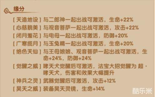 天造地设:与二郎神一起出战可激活,生命+22%