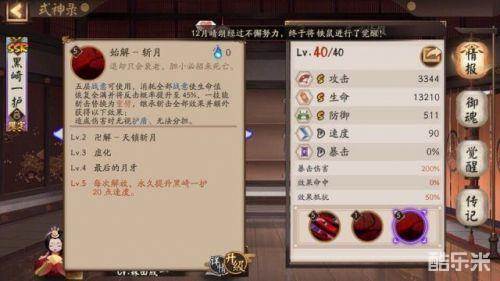 ②卍解-天锁斩月(无消耗)五层战意才能使用,消耗全部战意生命值恢复全满并将反击概率提升至50%,一技能重劈替换成“月牙天冲”,继承“重劈”全部效果,并额外获得以下效果:造成伤害时,无视御魂、被动。
