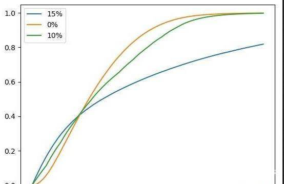 另外,给出一些抽取次数对应的分布情况(即x%的人能在这个抽取次数下抽到至少一张SP般若),及与固定15%up的模型的比较。