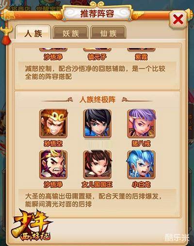 少年西游记阵容推荐 人仙妖三族后期阵容