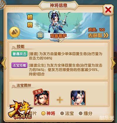 仙族阵容中的治疗由观音菩萨担当,当被治疗的友方生命低于50%时,治疗率将加成15%(突破+5激活);在释放法宝技能的同时,还能为我方后排添加免伤Buff,当法宝觉醒3星时,免伤范围将扩展至我方全体。这套阵容攻守兼备且容错率高,可说是万能之选。