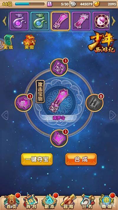少年西游记中宝物系统是相当于多了两件装备,接下来小编就跟大家一起看看宝物的合成以及抢夺,看看宝物系统详解吧。