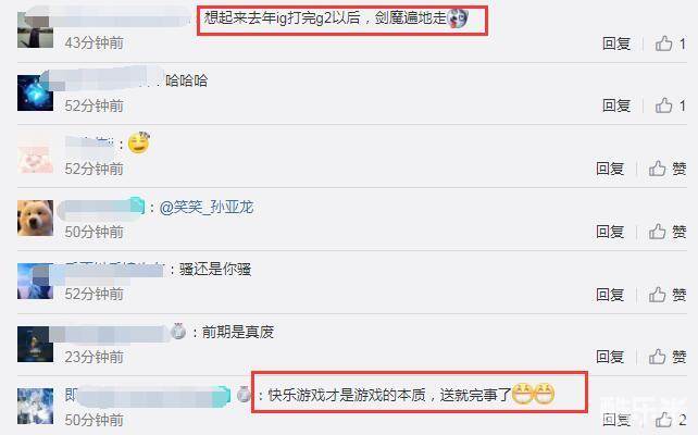 在看到G2战队发推说的这番话后,网友们也纷纷热议起来,其中就有网友调侃道:快乐才是游戏的本质,送就完事了。也有网友谈到了去年IG战胜G2后的情况,一时间剑魔遍地都是。