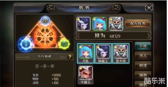另外,五行相生最明显的就是“阵容”设置上带来的属性加成。不同属性搭配带来的属性加成差异,有时候会成为副本能否通关的关键。例如,应对小怪副本,可以搭配高攻属性阵容,加快推图效率;面对强Boss关卡,可以搭配高防破法属性阵容,主打防御反击等等。当然还有更多的搭配效果,还得靠小伙伴们自己去发掘。
