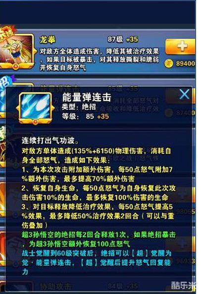 效果评估:此技能除了伤害与怒气有关,还有续航的回血能力与给敌人的减疗能力都与怒气有关,因此在战斗中,超3孙悟空的怒气将决定他的上限。