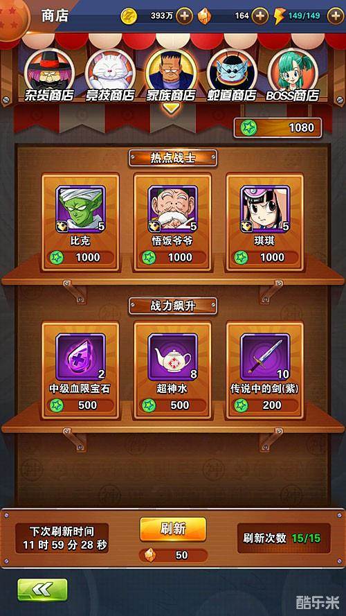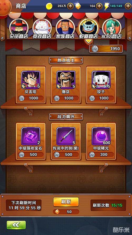 针对战士后期的战力不同,个人建议大家重点购买这几个战士碎片:天津饭,斑斑,比克,贝吉塔,人造人。此外,有时候可以发现刷新出来可以购买超过3个碎片的战士,日常去商店查看更新的战士碎片也是我们每日必做事情之一。