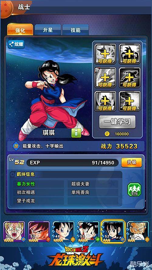 琪琪在游戏中的定位是输出和控制,攻击方式为能量攻击。琪琪的必杀是十字形范围伤害,并且还有几率定身,可谓攻守一体的好技能。绝招和孙悟空是一样的,不过攻击属性变成了能量攻击。游戏第二天即可免费获赠琪琪,入手难度为零,而且还可以和孙悟空以及布尔玛直接配成羁绊,可以说非常实用。对于不想充值的玩家来说,琪琪完全可以作为队伍中的主力输出。尤其是能量攻击的模式在遇上物理免疫的对手时能起很大的作用。