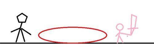 注:那个圈是黑老大的攻击范围,拿刀的是你