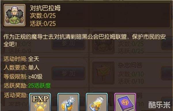 对抗巴拉姆活动的内容就是击败巴拉姆联盟的25个NPC,其中包括5个BOSS(每5关一个BOSS),每击败1个NPC都会活动活动奖励。