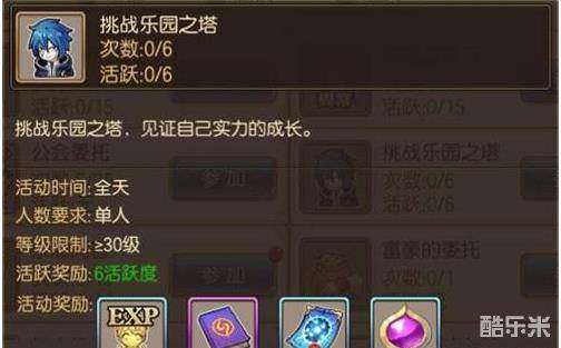 活动内容:挑战乐园之塔,见证自己实力的增长。
