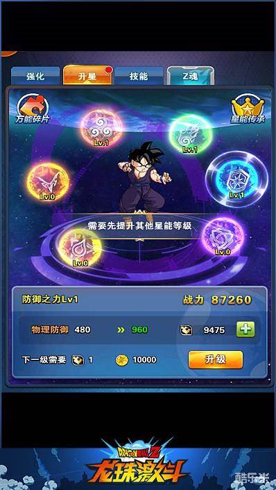 当背包中拥有7星战士的碎片时,就可以进行星能属性培养了。同一战士的不同星能属性的培养是独立的,不同战士的星能属性培养也是独立的。在星能培养页面,你可以很清晰的看到每个星能属性升到下一级的属性。点击界面下方的【升级】按钮,消耗1个战士碎片和1万金币,即可进行升级。对同一星能属性再次升级时,需要其他5个星能属性提升到同等级后,方可进行下一步的升级。升级星能属性在获得对应属性的加成外,还可提升战士的战斗力。