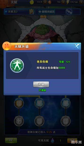 防御天赋累计可投入25点。天赋树第一级天赋【老兵伤害】全部点满+5点,可以为所有战士增加5000点生命值,战士变得更加肉厚耐抗,队伍的持续作战能力也更强。