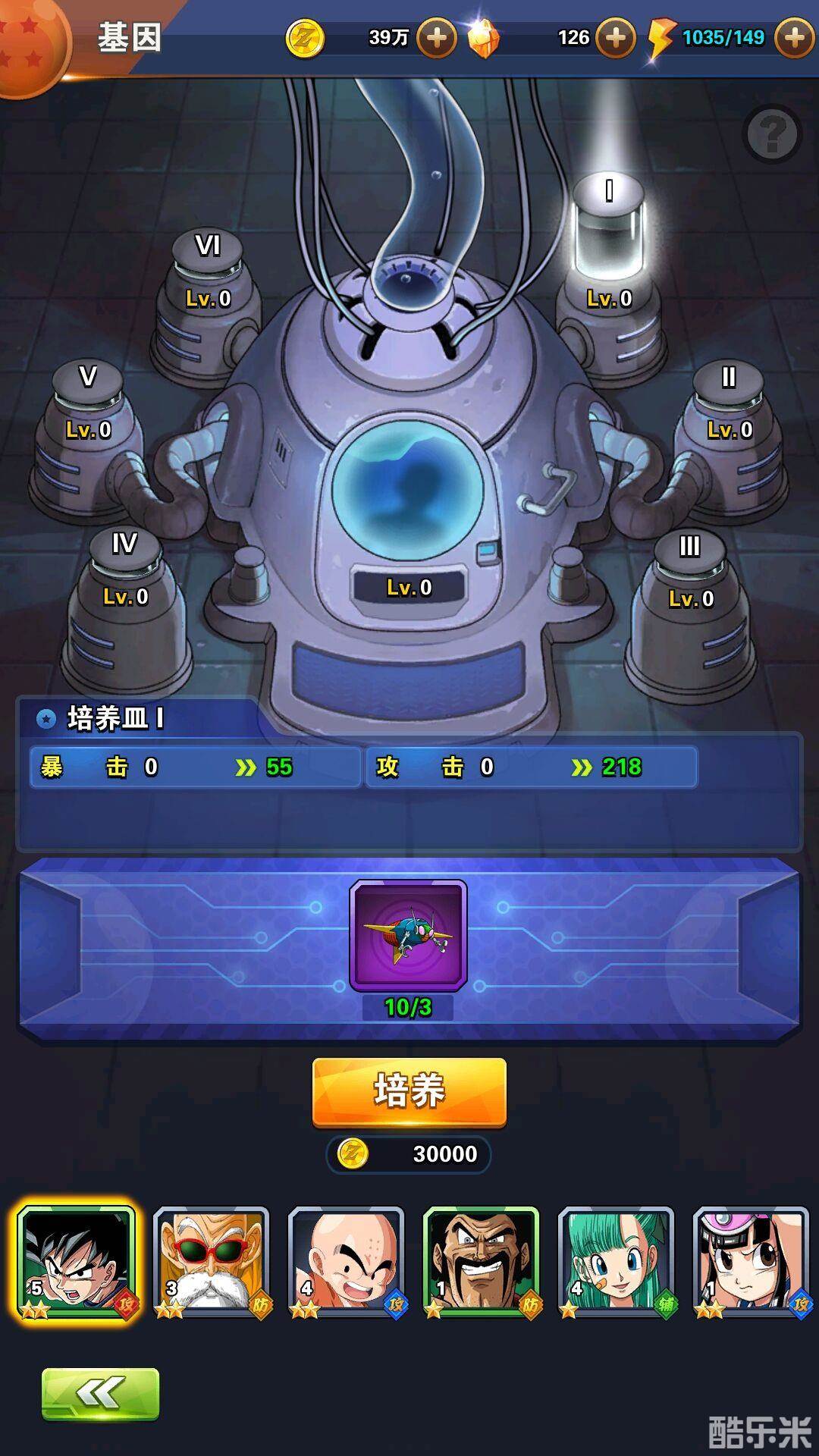 基因培养需要不同的道具,为此这次版本加入基因试炼系统来帮助获得,同样也是在玩家49级之后开启。基因试炼不同于其他试炼,要使用特定战士来帮助悟空击败沙鲁。阵容上可以安排6个人上场,单个队伍上阵1人可获得2分,2人6分,3人10分,4人14分,5人18分;如果放置的是幸运队伍成员,得分则是加倍计算。每天的幸运队伍各有不同,或是孙悟空、库林代表的龟仙流派,或是天津饭、饺子代表的鹤仙流派,亦或是琪琪、布尔玛代表的美女战士们。根据每日幸运队伍的提示,布置最合理强力的阵容,最终得分才会越高,得到的奖励才会越多。