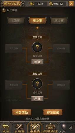 在新版本中,一共更新了三个内容,分别是:巅峰1V1、天魔宝石、宠物魂骨。巅峰1V1也就是前面提到的跨服战,一共有两个赛制:海选赛和淘汰赛。