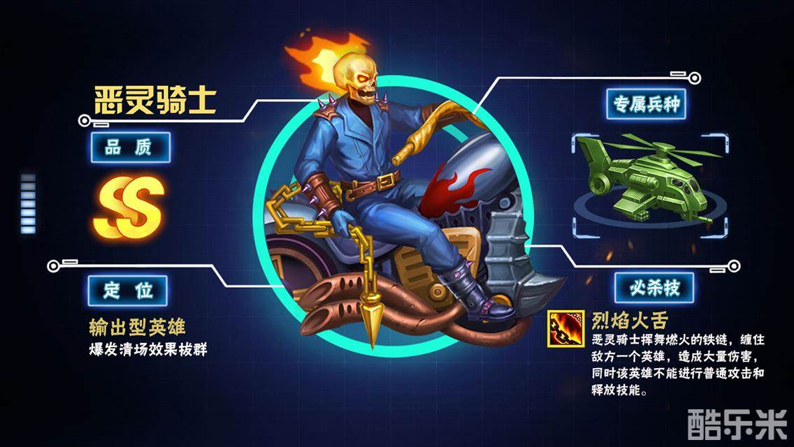 作为在漫画中风靡世界的角色,恶灵骑士是一名邪恶势力的审判者,他擅长用手上的强力锁链对敌人造成大量伤害,并且部分技能可造成控制效果。