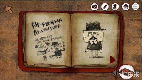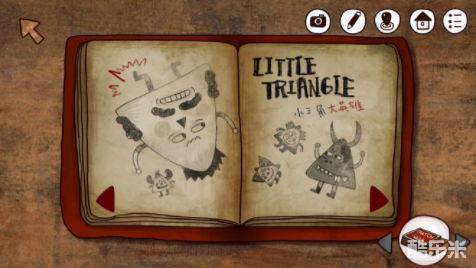 同样在二楼房间里,我们打开笔记本,前两页可以看到《南瓜先生大冒险》和《小三角大英雄》,也许有的同学并不了解,这里还是简单介绍一下。这两幅插画画的是胖布丁工作室之前制作的另外两款同样备受好评的游戏,其画风可以说是非常好辨认了,也许这就是胖布丁的专属画风吧。