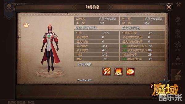 综上能够看出,旭日神使凯特作为一个法师型幻兽,培养起来用以过渡还是很不错的。如果你前期没有极品法师幻兽,或者说想追求一些防御上的成长,那么凯特其实是个不错的选择!