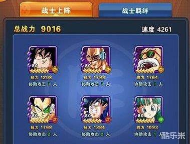 亚奇洛贝(防)、那巴(防)、龟仙人(防)、拉蒂茨(攻)、孙悟空(攻)、布尔玛(辅),3防2攻1辅组成了强有力的肉盾型战队,非常适合新手玩家前期使用。