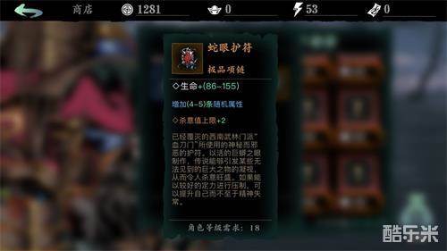 第二个项链是椿阁,这个应该不用怎么介绍,在受到致命伤(一般是血条空了情况下)会瞬间恢复35%-50%的血量冷却时间为五分钟,这一件装备也是属于泛用性较大的装备,一般来说项链用它就可以了。