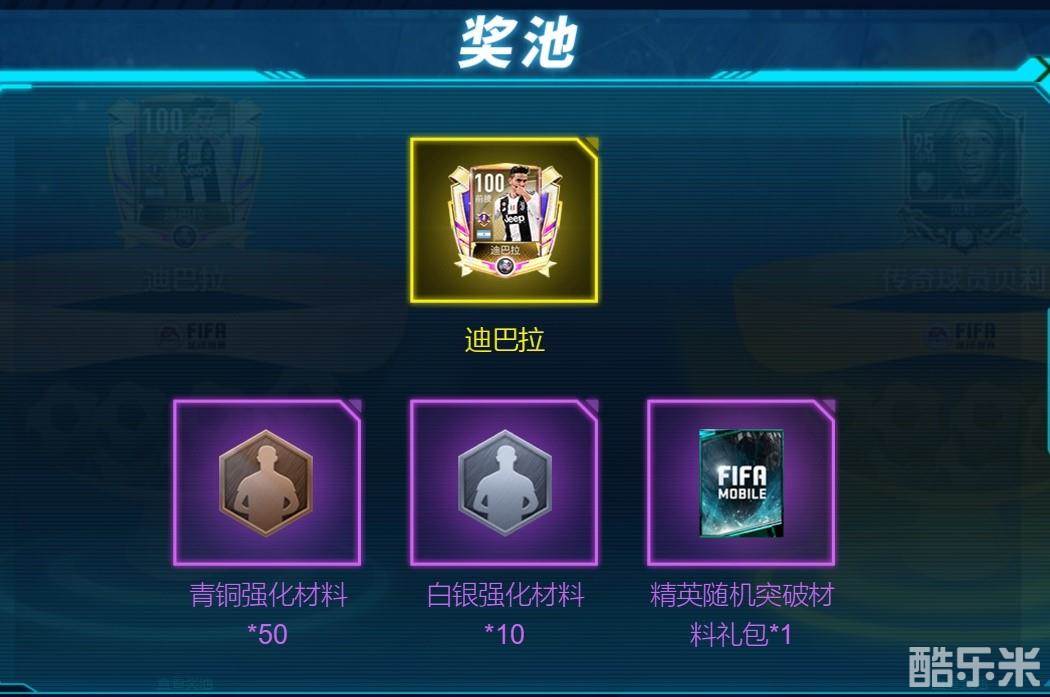 普通奖池里有海量经验、金币、强化材料、精英突破材料等精美好礼,最欧更有周年庆OVR100迪巴拉等你来拿。