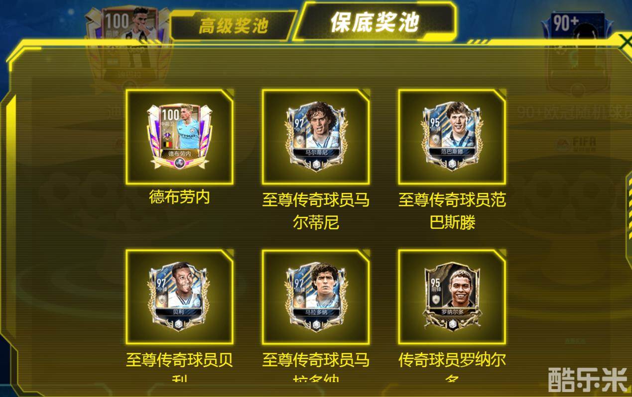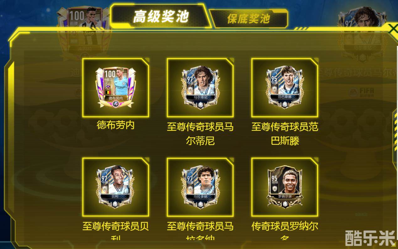 高级奖池10连抽保底奖励除了传奇碎片,还有贝利、大罗、至尊马拉多纳、周年庆德布劳内等重磅豪礼!