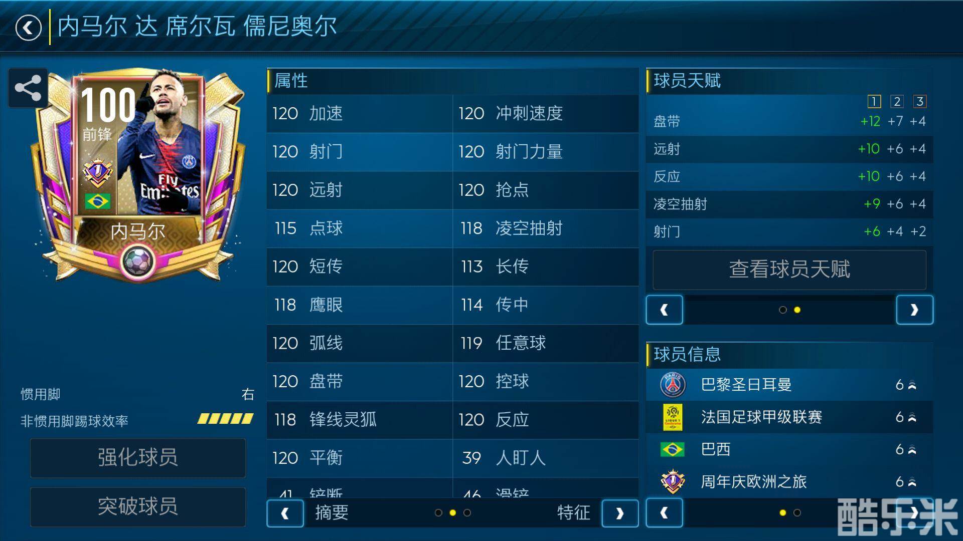 作为首次出现的OVR达到100的卡王,三位球星不再需要消耗经验升级,初始100的评分即插即用,可以直接进行突破。