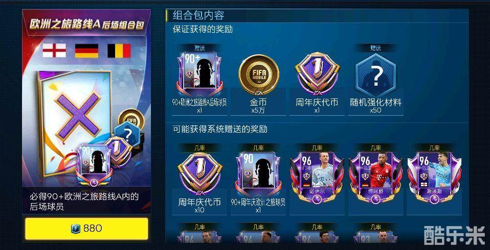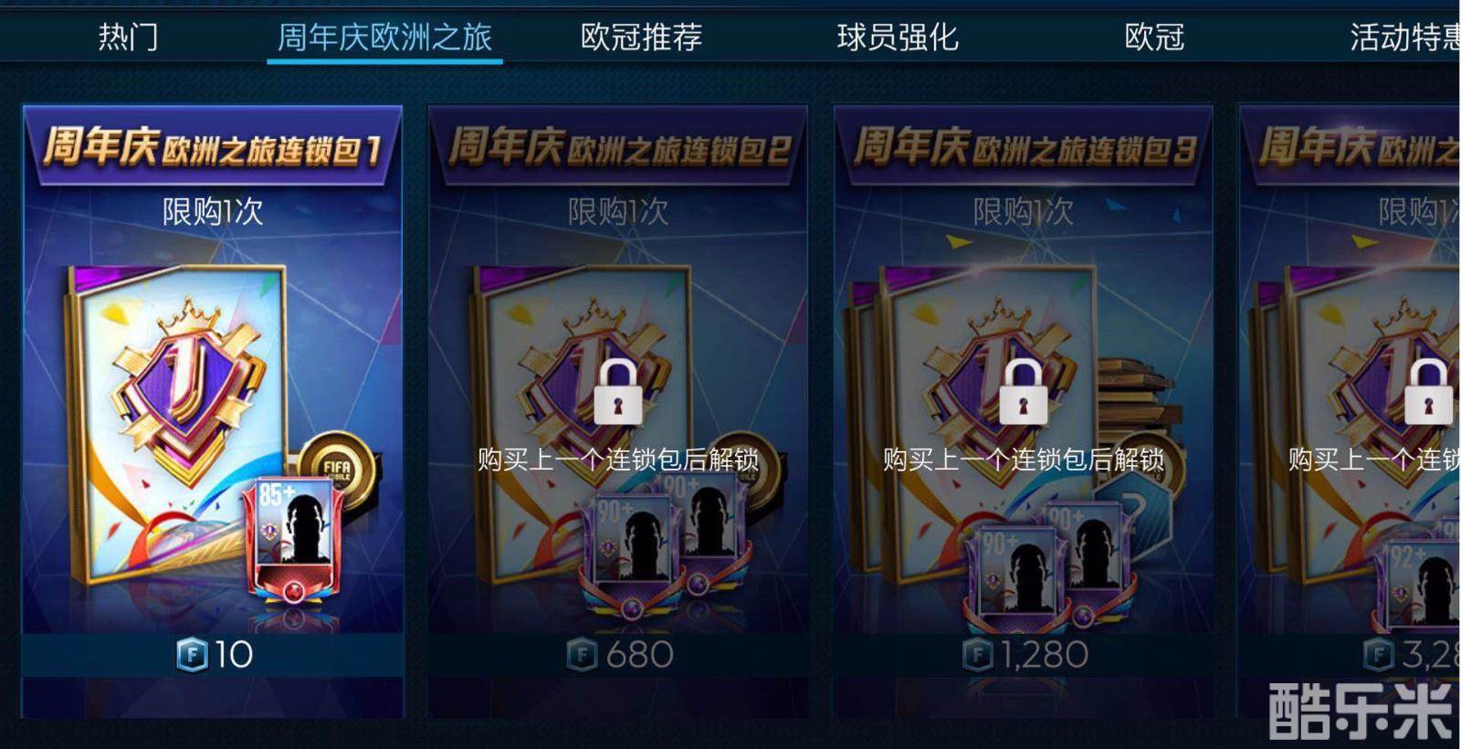 周年庆代币可以通过购买欧洲之旅特定路线组合包获取,其中除了周年庆代币之外,还包含了特定国家和位置的90+大师球员以及金币和强化材料,玩家可以从中获取特定位置和国家的球员,更容易拿到自己心仪的球星;此外玩家还可以通过欧洲之旅组合包、欧洲之旅优惠包以及直接购买获得周年庆代币。
