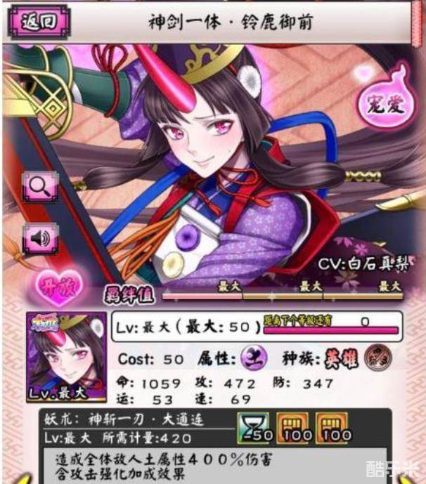 铃鹿的适用环境:配合麒麟打英雄巡礼奇谭,和不考虑限制的所有巡礼奇谭。超满汉全席必备。《妖怪百姬》是一款妖怪题材的RPG手游,玩家在游戏中可以遇到各种由妖怪化身的美少女,并可以与她们成为同伴,在全日本的舞台上展开冒险之旅...