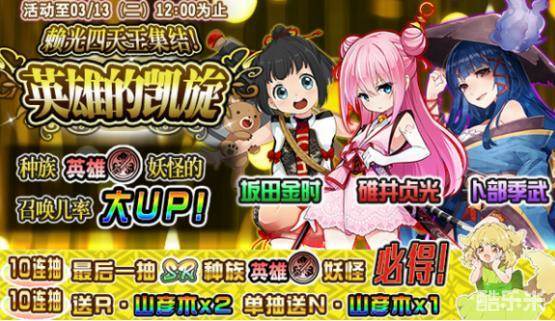 妖怪百姬英雄凯旋大召唤祭活动怎么玩是小编为大家带来,妖怪百姬英雄凯旋大召唤祭作为3月的首个新活动,其中赖光四天王也将集结,下面不妨详细了解下。