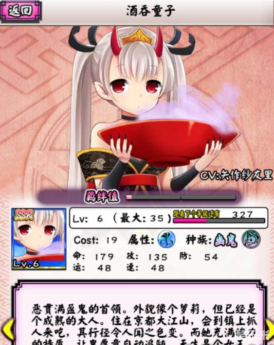 最后编辑于6年前妖怪百姬SSR酒吞童子技能怎么样是小编为大家带来的,游戏中,SSR酒吞童子是恶贯满盈的首领,据说是住在京都大江山,会到镇上抓人吃,其行径令人闻之色变,技能表现怎么样呢,下面不妨详细了解一下吧......