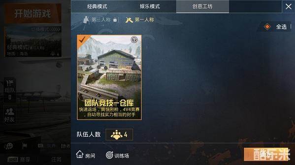 大家可以在《和平精英》主界面左上角进入模式选择界面,在上方选择创意工坊模式,然后选择目前仅有的团队竞技——仓库。相信大家都玩过FPS类型的游戏,4v4团队竞技顾名思义,两个队伍每队4个人在仓库这张地图上进行比赛,先达到40杀敌数的队伍取得胜利。那么团队竞技和大逃杀模式有什么相同之处与不同之处呢?
