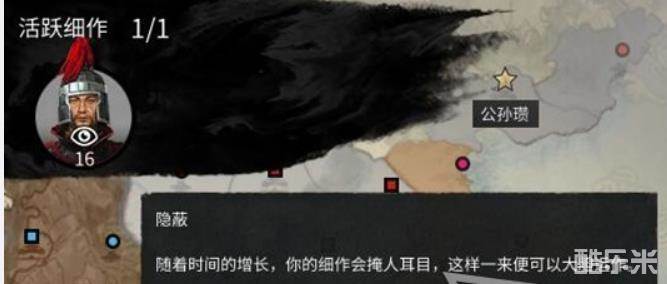 隐蔽点数代表了人物隐蔽性,只有当细作拥有足够隐蔽点数时,才能执行行动。行动结束后,必须要等隐蔽点数恢复后才能继续执行任务。最大隐蔽点数是100。
