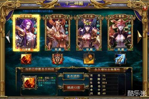 挑战12宫这个活动,能给玩家各类宝石以及十二宫碎片的奖励,价值不菲,而且操作简单,每天只要依次通关即可。通关后即可激活12宫的妹子们啦,并且还能给你永久增加属性呢。