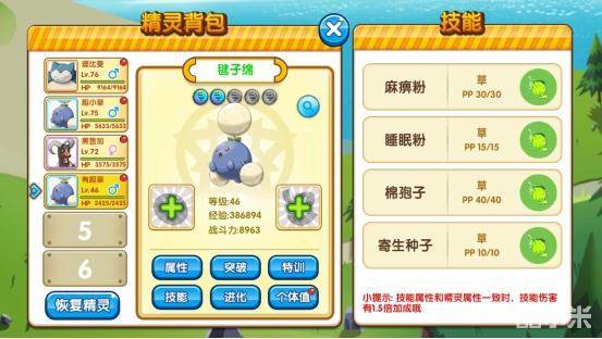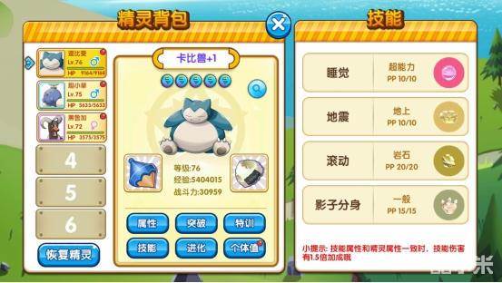 技巧四:注意技能pp消耗,如果自己主力强力,可以直接主力碾压,注意最后五层,上面的技能都剩余5pp即可,可每层带走一个克制pm即可。