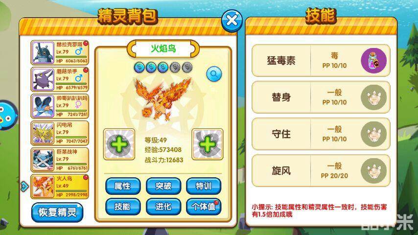 我喜欢这样玩。技能毒毒,守住,替身,旋风。带剩饭配奇迹果第一回和遇到的是控或者肉,比如毽子,月月,蛋蛋,果断替身,这有人问了毽子速度比你快,可以催眠你!我只想说你奇迹果带假的?接下来毒毒如果对面也有果子就再来一次,放心这三个家伙除非用咒语,不然破不了你替身预计70级特五火焰鸟7000多血一个替身1800左右。就算被咒语,你可以继续替身对面直接被毒死。旋风干嘛用?对面中剧毒对吧?旋风用了换下只,继续毒!我怎么感觉我好坏。这边说一下,中剧毒每回合扣血加倍对面一般不敢切换已经中毒的宠物出来,因为出来后直接再扣一次血再说!而却比第一次疼。