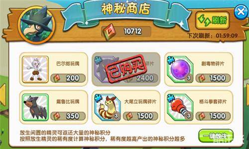 然后再说下神秘商店的技能<急冻光线、泡沫光线、破坏死光>。所以我们金币十连以后给的小宠物全部放生,换急冻光线就可以。