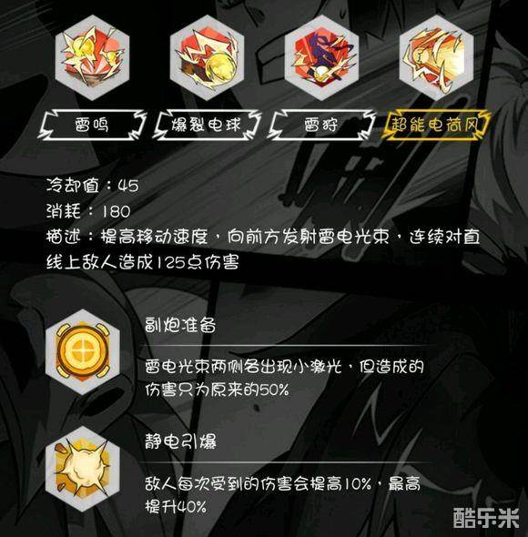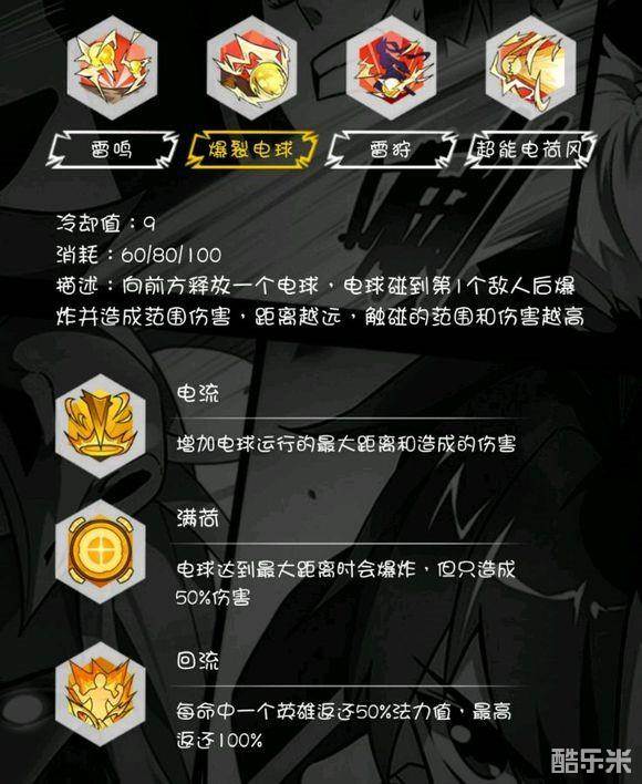 电球的飞行速度很慢,但伤害很高,因为是四方,所以加强的话绝对是力推电流,能在打团时在很远的地方输出,也能一炸一大片(我记得这是aoe伤害吧……别打脸)