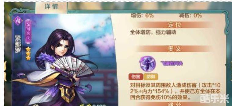 作为一个内的角色,江湖传说,紧那罗的防御和输出都是可圈可点的,所以我会将紧那罗在第二位来推荐。
