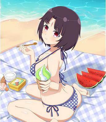 “哟~冰激凌好好吃哦,你也坐下来陪我一起吃吧!”