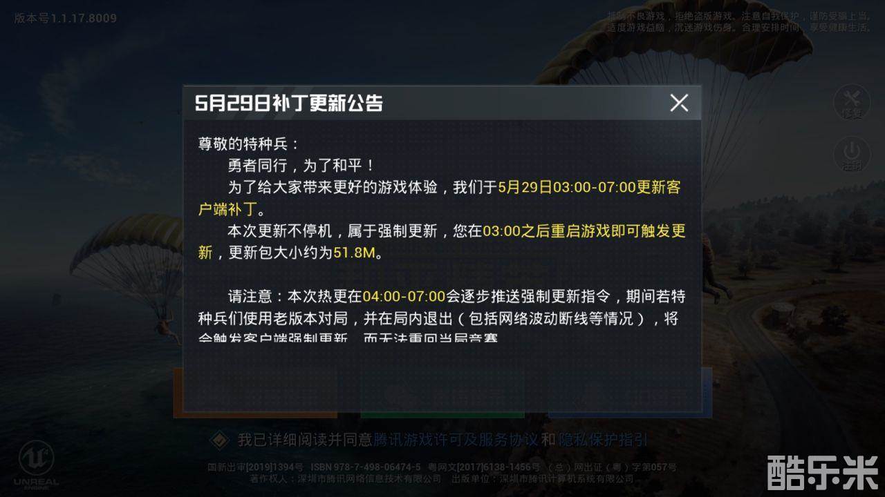 请注意:本次热更计划在04:00-07:00逐步推送强制更新指令,期间若特种兵们使用老版本对局,并在局内退出(包括网络波动断线等情况),将会触发客户端强制更新,而无法重回当局竞赛。
