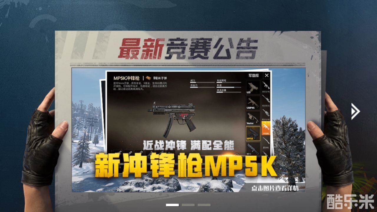 1) 新增MP5K冲锋枪——使用9mm子弹,拥有全配件槽(瞄具、枪口、弹匣、握把、枪托、侧瞄准镜);仅在雪地地图刷新,代替Vector冲锋枪;