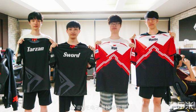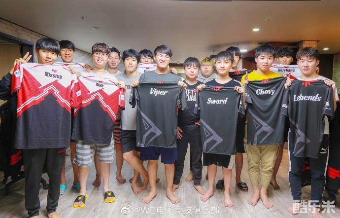 WE前往韩国与GRF进行集训在近期结束,WE官博也分享了双方交换队服的照片。