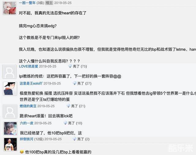 在比赛结束后就有网友在论坛中聊起了这个话题,有网友表示“对不起,我真的无法忍受heart的存在了,搞完rng心态来搞edg?这个教练是不是专门来lpl毁人的啊?我入坑晚,也知道这么说很偏执也很不理智,但我就是觉得他用他奇烂无比的bp和战术毁了letme、haro以及mlxg,这个人懂什么叫自我反思吗?”