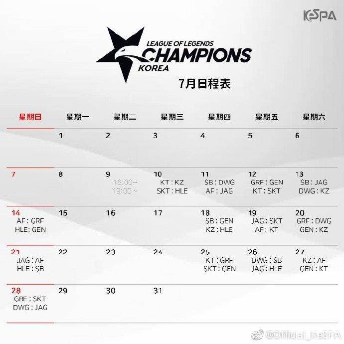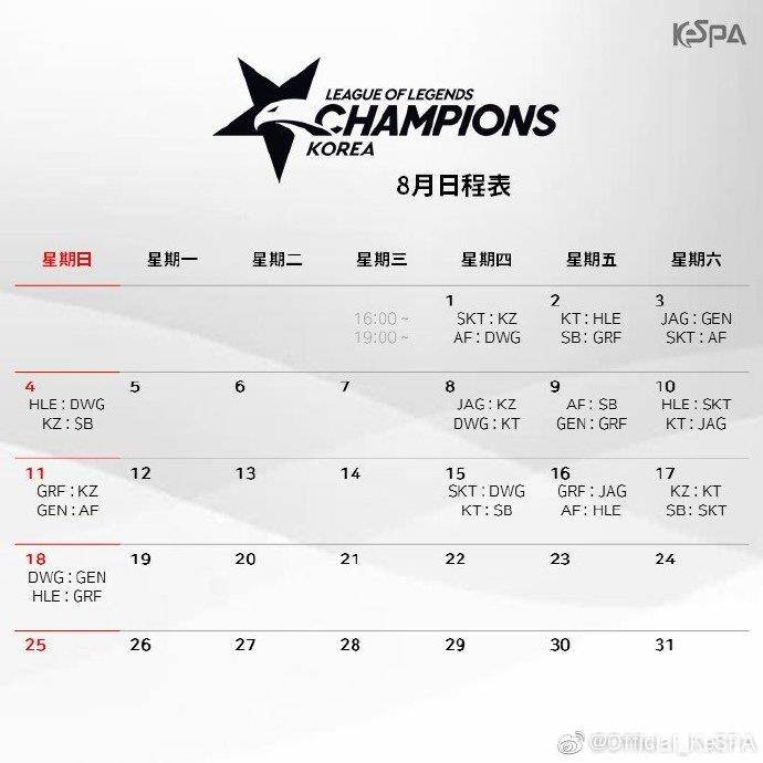 [2019 LCK 夏季赛]2019LCK赛程