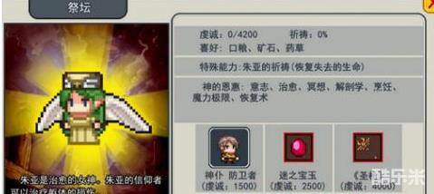 伊洛纳elona手游中有八位神明,其中朱亚是治愈神,那么新手选择信仰治愈神好用吗?信仰治愈神有什么好处?治愈神祭坛在哪?治愈神的贡品有哪些?下面小编就为大家整理带来解答: